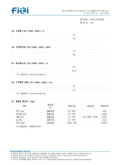 (주)콜커 칼라 코르크 탄성바닥재_시험성적서